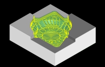 カッターパスは狭い入り組んだ箇所でも構造点を均一に配置! 高品質な加工面を実現します。 従来の荒取り機能に加え、高速工具パス演算方式の加工「等高複刃加工」を搭載。他にも、高硬度材の高速直彫り加工を実現する等高線高効率荒取り加工など、よりいっそうの時間効率を重視した荒取り加工が実現できます。荒取り工程では、等高線オフセットパスを基本として高速加工を行える等高複刃荒取り加工をはじめ、次工具にて取り残り部位を追い込む複刃取り残し加工を用意しました。 |