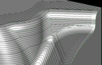 連続した曲面群に対し、指定した輪郭を元に滑らかな面沿いパスを生成します。高品質な加工面と加工時間短縮が必要な場合などに有効となる加工モードです。また、面直方向からの追い込み加工が可能なため、仕上げ工程のみならず、部分的な中荒取り加工などの様々な工程で活用できます。